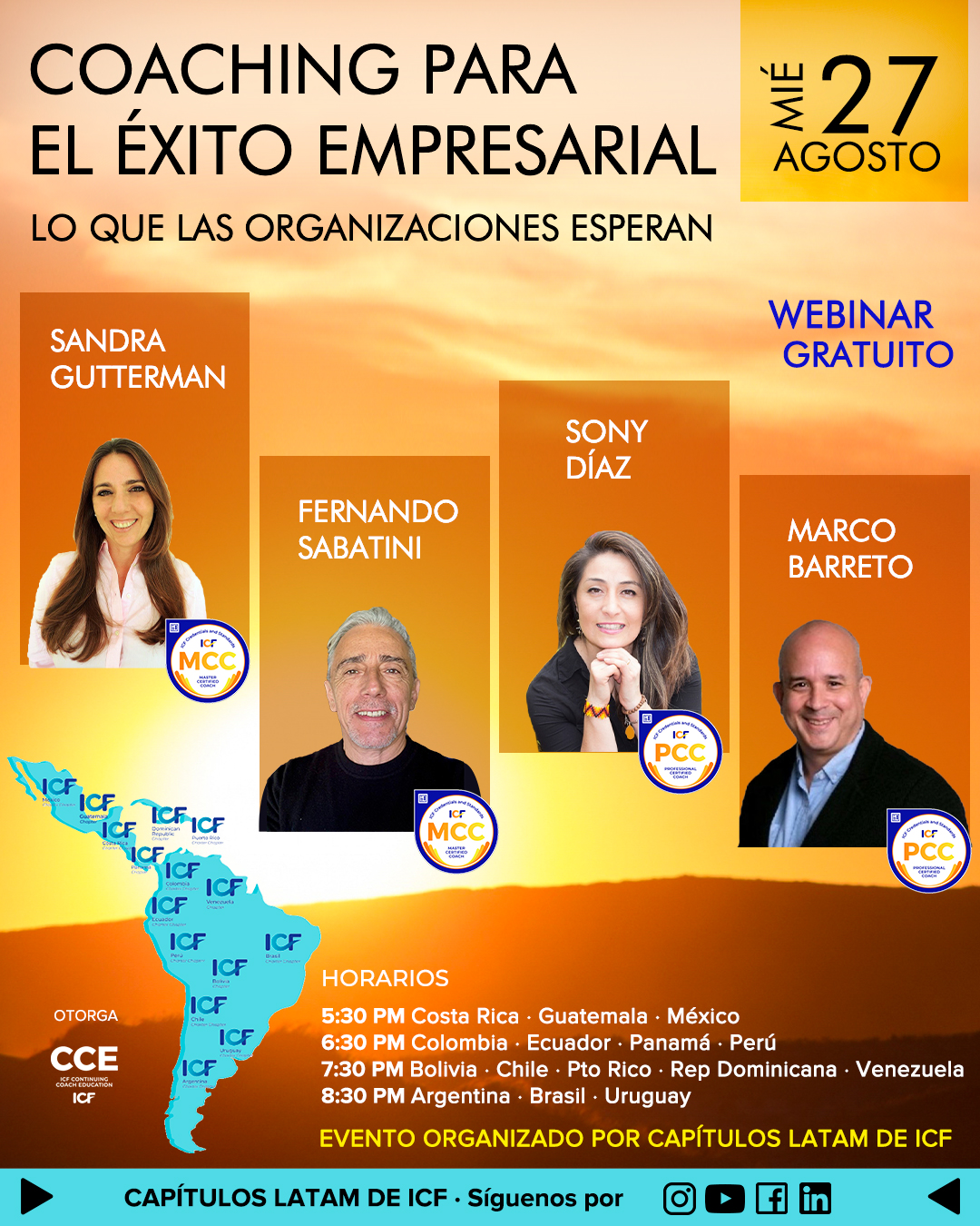 La metodología será tipo conversatorio en el que los 4 expertos nos proveerán marcos de referencia para nuestra reflexión a propósito de lo que quieren las organizaciones de los coaches.